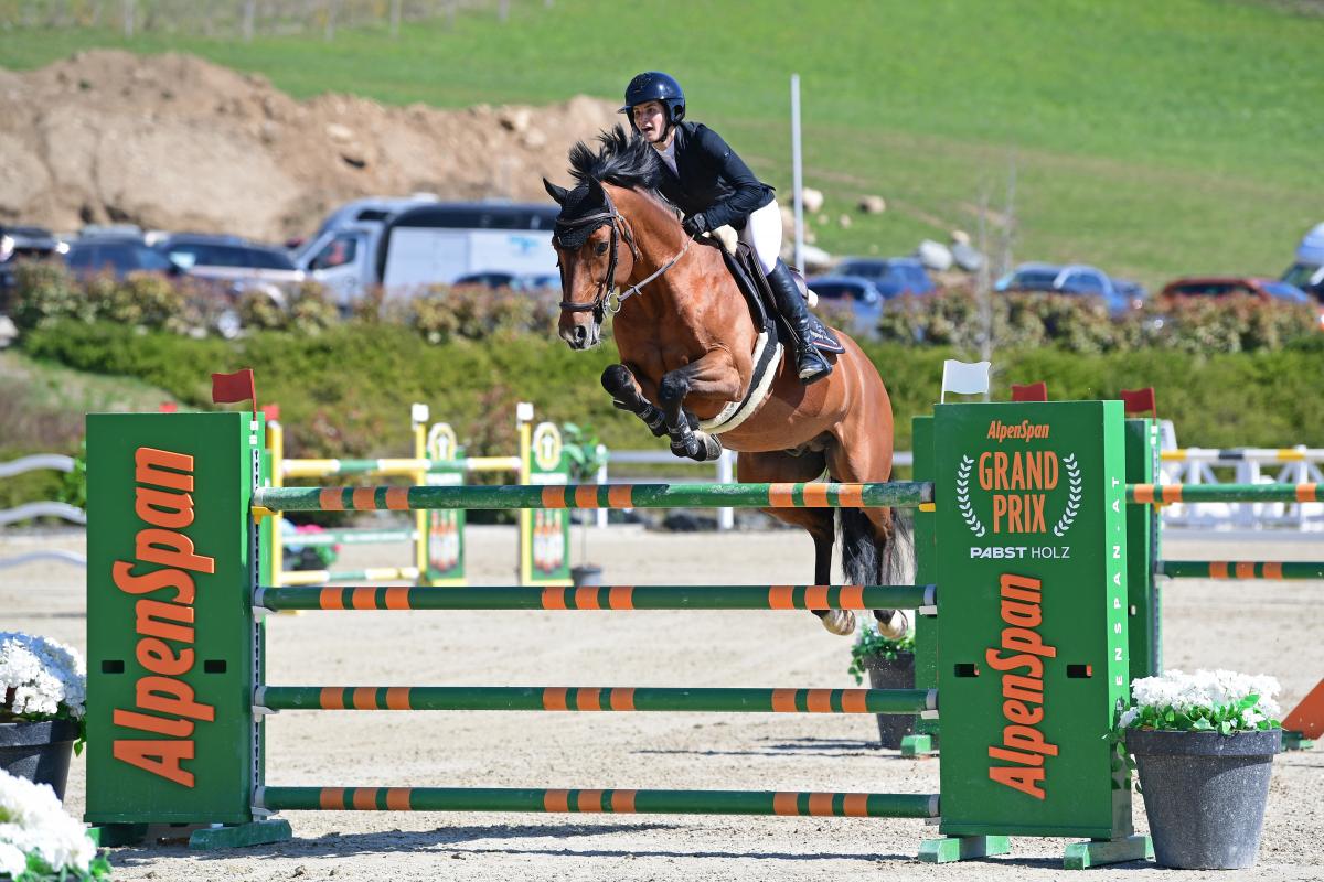 Bei Sonnenschein und 20 Grad Plus am Ostersonntag füllte sich die Tribüne am Stücklerhof Lavanttal in St. Margarethen bei Wolfsberg zum großen Finale. 24 qualifizierte Paare traten auf der ersten Etappe der AlpenSpan Tour im AlpenSpan Grand Prix powered by Pabst Holz an. 16 Sprünge, 13 Hindernisse – darunter ein Wassergraben und eine Dreifachkombination – über die maximale Höhe von 1,45 Meeter waren zu absolvieren.