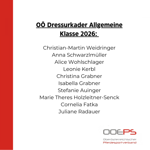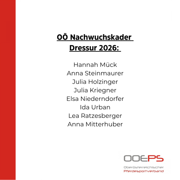 Mit Freude präsentiert das OÖ Dressurreferat die neuen Dressurkader 2026.