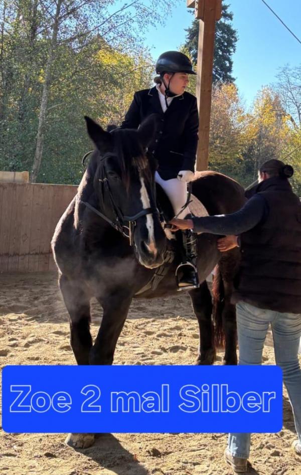 Auch Zoe Alesch, eine Gastreiterin aus Bayern, die von Ute Zeilinger mitbetreut wurde, konnte mit zwei Silbermedaillen in den B-Bewerben überzeugen.