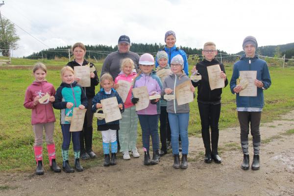 Am 14. September war es endlich soweit, und wir öffneten die Bühne für unsere NachwuchsreiterInnen. Das ganze Jahr fleißig trainiert, im Sommer an den Theorienachmittagen teilgenommen... dann konnte schon nicht mehr viel schief gehen... könnte man meinen... Leider hat es der Wettergott nicht so gut mit uns gemeint, und bei Beginn der Prüfung nochmal eine ordentliche Ladung Regen ausgelassen. Aber so Profis wie die Nachwuchszwerge konnte das nicht aus der Ruhe bringen. So drehte sich das Tagesprogramm und wir starteten mit der Theorie. Perfekt vorbereitet, konnten sie alle Fragen super beantworten.