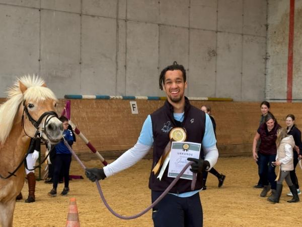 Das Pondera Team mit Simone Sperl, Lea Gschwandtner, Stefan Maier, Jonas Wiredu und Martina Hörandtner nutzte am 19.4. den Aktionstag für therapeutisches Reiten in der Stiftsreitschule Lambach als Trainingsturnier.